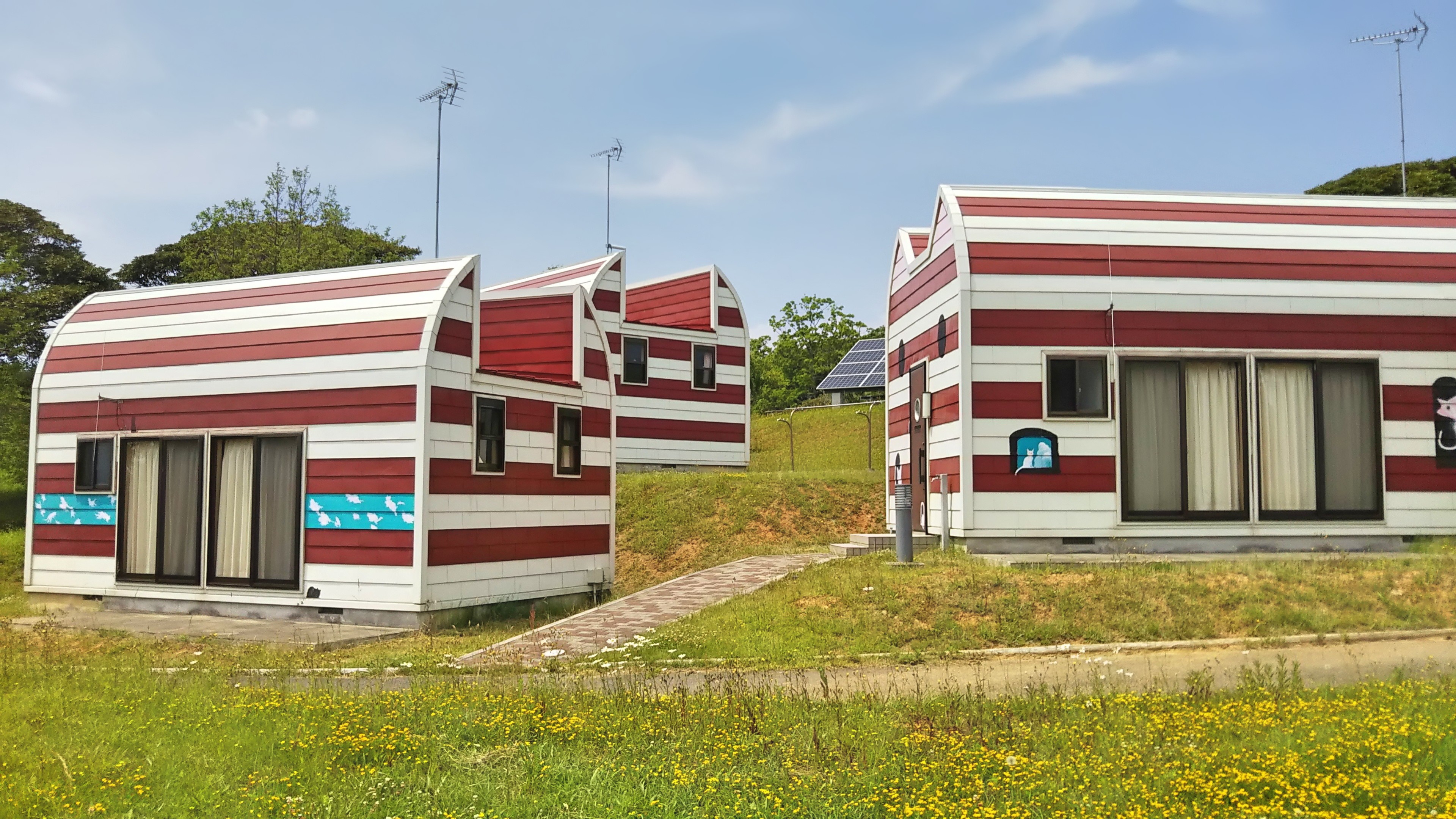 Cat-shaped cabins at Manga Island. (Image credit: 石巻市)