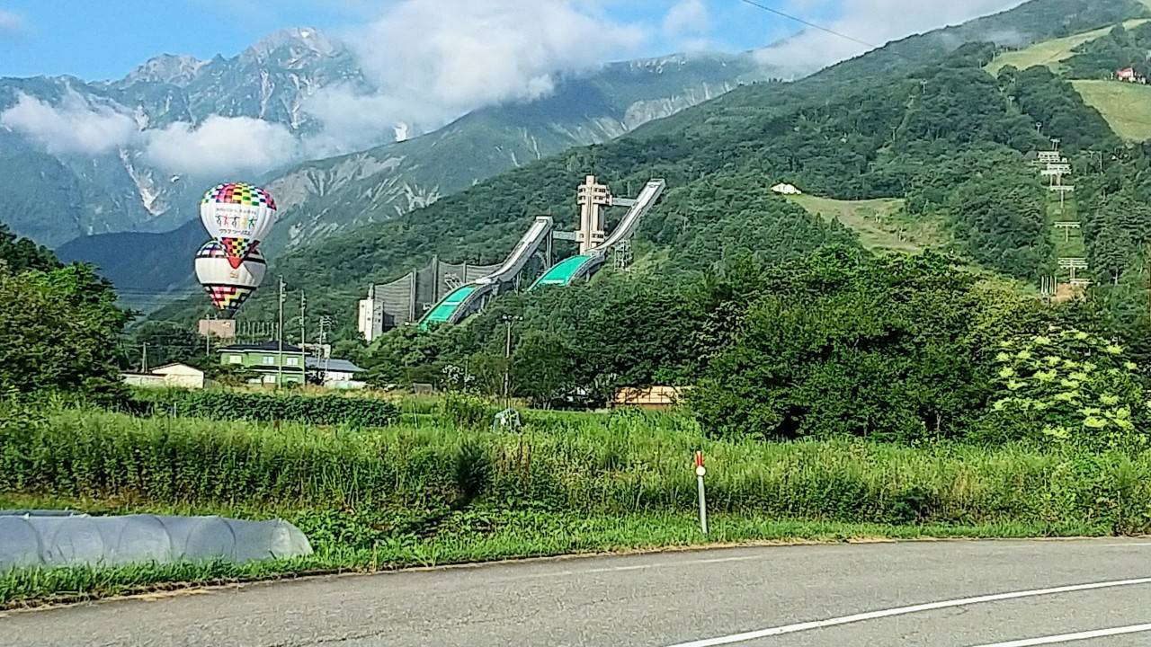 ไม่นานนักเราก็มองเห็นสนามกีฬาอยู่ไกลๆ Hakuba Ski Jumping Stadium เคยถูกใช้ในการแข่งขันกีฬาโอลิมปิกฤดูหนาวที่นากาโนะในปีค.ศ. 1998 ที่นี่มีเนินกระโดด 2 เนิน ความสูง 90 เมตร และ 120 เมตร