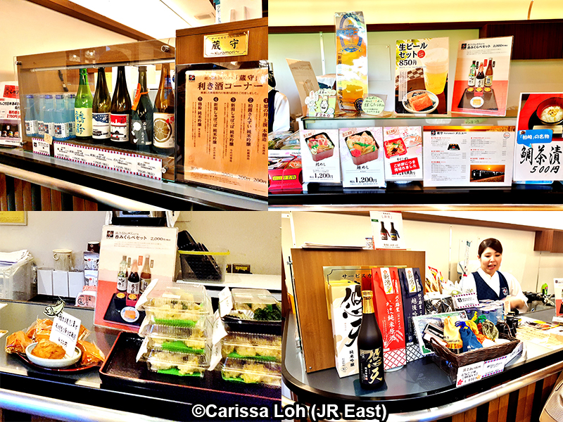 ถ้าการชิมตัวอย่างสาเกยังไม่พอ คุณสามารถไปที่เคาน์เตอร์ Kuramori (蔵守) บนขบวนรถที่จำหน่ายสาเกที่คัดสรรมาเป็นอย่างดีจากเมืองต่างๆ ในนีงาตะ ที่เคาน์เตอร์จะมีชุดสาเกให้ลองดื่มได้ห้าชนิด โดยคุณสามารถเลือกชิมสาเกห้าชนิดใดก็ได้