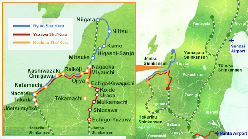 - Yuzawa Shu*Kura (ゆざわShu*Kura): ga Jо̄etsumyо̄kо̄ ⇄ ga Echigo-Yuzawa