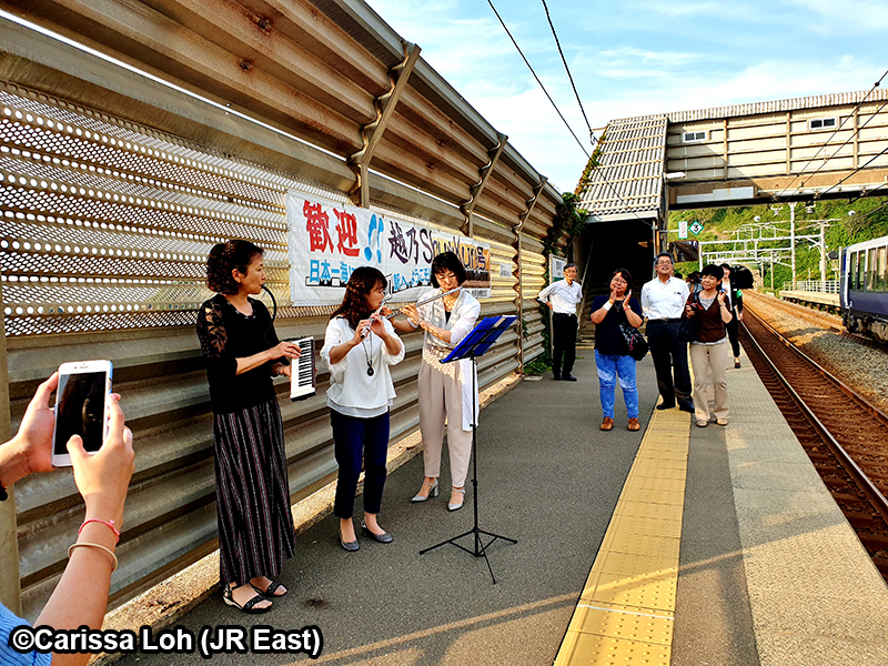 การแสดงบนชานชาลาที่ Omigawa สถานีรถไฟที่ใกล้ทะเลที่สุด (เครดิตรูปภาพ: JR East / Carissa Loh)