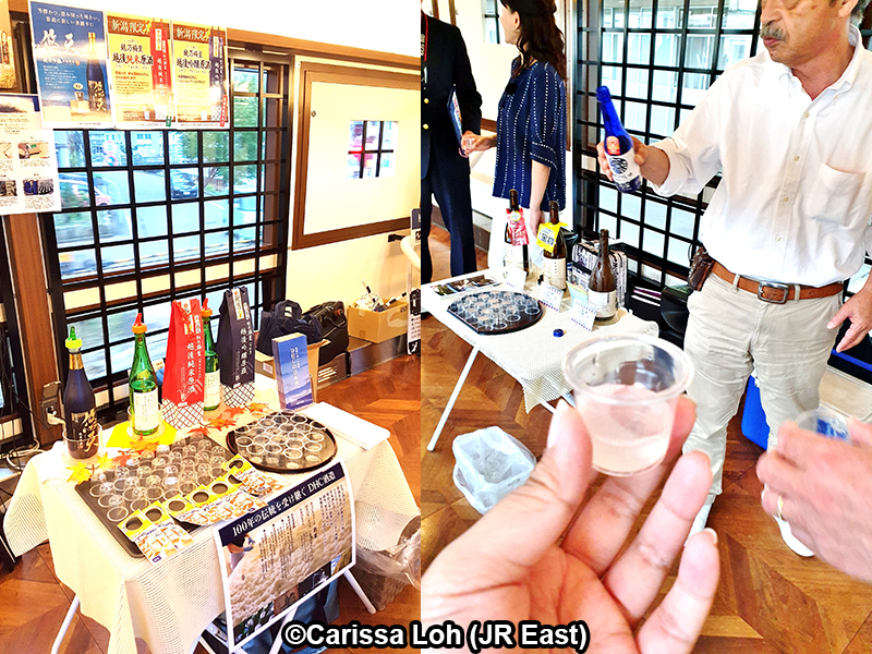 กิจกรรมชิมตัวอย่างสาเกบนรถไฟ Koshino Shu*Kura (เครดิตรูปภาพ: JR East / Carissa Loh)
