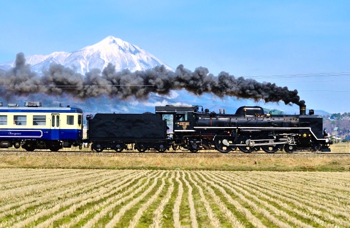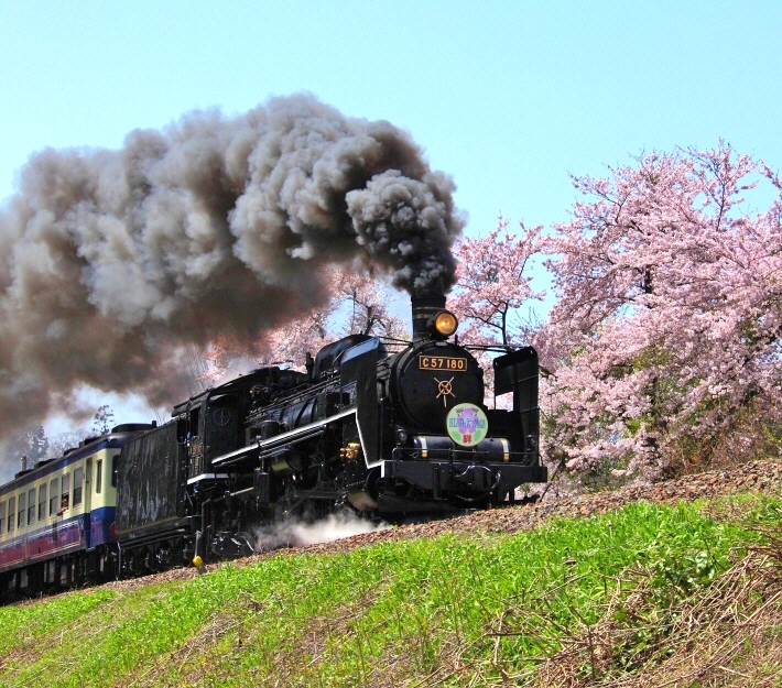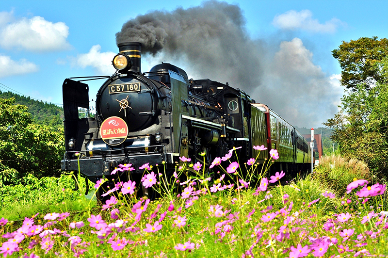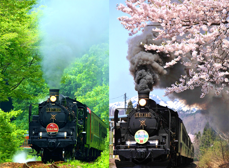 รถจักรไอน้ำ C57 180 ขบวนนี้ที่เป็นที่รักของคนในท้องถิ่นมานับสิบปี เป็นขบวนรถที่พร้อมมอบประสบการณ์ชวนหวนถึงอดีตที่ไม่เหมือนใคร รถจักรไอน้ำขบวนนี้ถูกสร้างขึ้นเมื่อปี 1946 และมีชื่อเล่นว่าคิฟุจิน (貴婦人 คุณผู้หญิง) ซึ่งมีที่มาจากรูปลักษณ์ของรถที่ดูสง่ามีระดับ แม้รถจักรไอน้ำทั้งหมดจะถูกระงับการให้บริการ แต่รถจักรขบวนนี้ถูกนำกลับมาใช้งานอีกครั้งในปี 1999 ตามเสียงเรียงร้องของผู้คน และถูกชุบชีวิตใหม่เป็นรถไฟ SL Banetsu Monogatari เพื่อสื่อถึงทางรถไฟสาย Ban-etsu West Line (磐越西線) ที่วิ่งระหว่างสถานี JR Aizu-Wakamatsu (会津若松駅) ในจังหวัดฟุคุชิมะ และสถานี JR Niitsu (新津駅) ในจังหวัดนีงาตะ