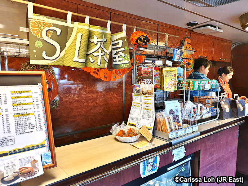 ถ้าคุณกำลังอยากหาอะไรทาน เคาน์เตอร์ SL Chaya (SL 茶屋) ในตู้รถที่ 5 ก็มีเครื่องดื่ม ขนม และของที่ระลึกของ SL Banetsu Monogatari อีกมากมาย และที่พลาดไม่ได้สำหรับการนั่งรถไฟ และเป็นหนึ่งในความสนุกของการนั่งรถไฟที่ฉันชอบที่สุด ก็คือการทานเอกิเบน (駅弁 ข้าวกล่องรถไฟ) ที่ปรุงจากวัตถุดิบท้องถิ่น