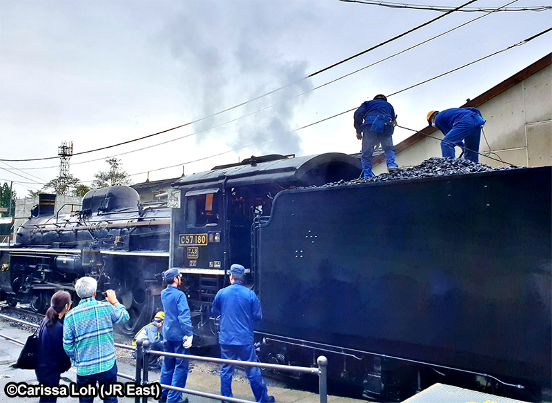 ต้องขอบคุณความทุ่มเทในการดูแลและความชำนาญของทีมงานที่ทำให้ทุกวันนี้รถจักรไอน้ำยังคงวิ่งอยู่ได้ เมื่อคุณเห็นทีมงานเข้ามาดูแลรถไฟแบบนี้ ลองบอกว่า โอสึกาเระซามะเดส (お疲れ様です ขอบคุณที่ทำงานหนัก) ไปยังทีมงานช่างดูนะคะ ฉันเชื่อว่าทีมงานได้ยินก็คงมีกำลังใจมากขึ้นแน่นอน!