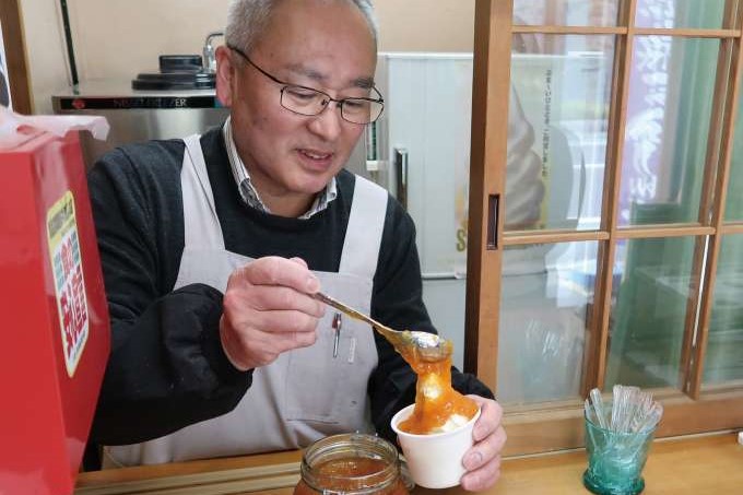 Soft-serve ice cream served with apricot jam. (Image credit: 信州千曲観光局)