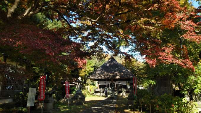 The main hall of thatched roof is called Omido (大御堂), and a 3m-tall, 11-faced Kannon statue made from zelkova wood is enshrined in it. Both the Chishikiji Omido and the Kannon statue are Important Cultural Properties of Japan (重要文化財 jūyō-bunkazai).