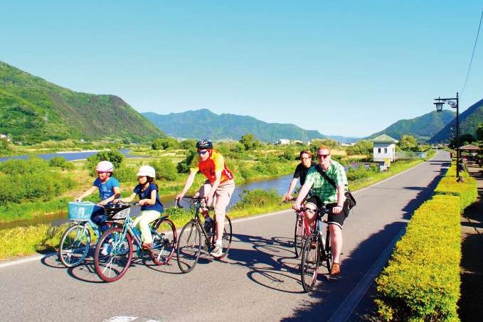 Cycling by the Chikuma River. (Image credit: 信州千曲観光局)