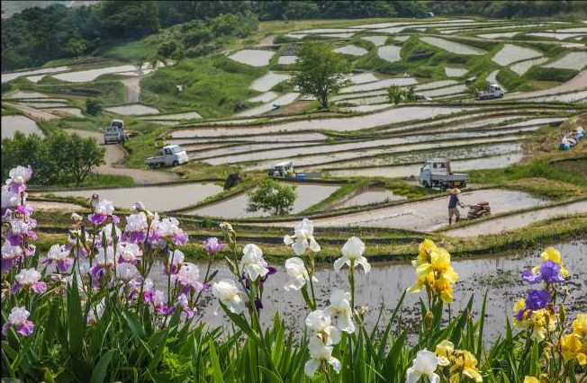 Obasute’s rice terraces in spring. (Image credit: 信州千曲観光局)