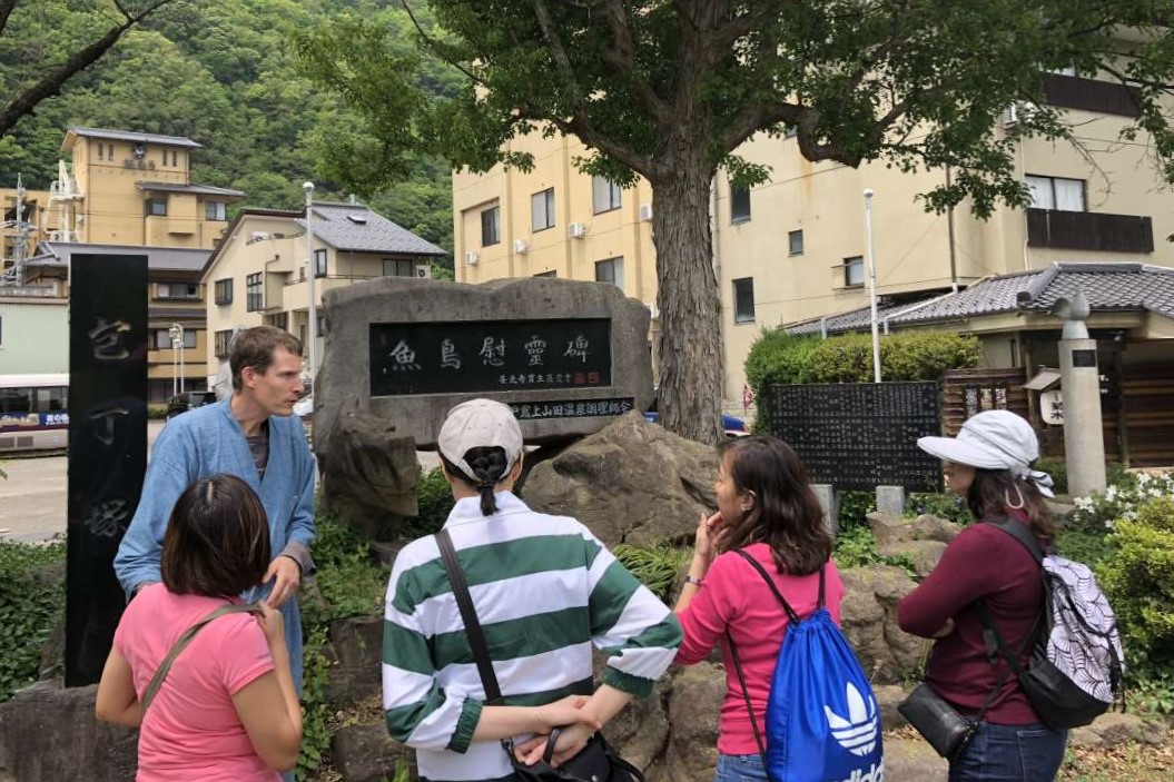 Tyler explaining the story of Obasute. (Image credit: 信州千曲観光局)