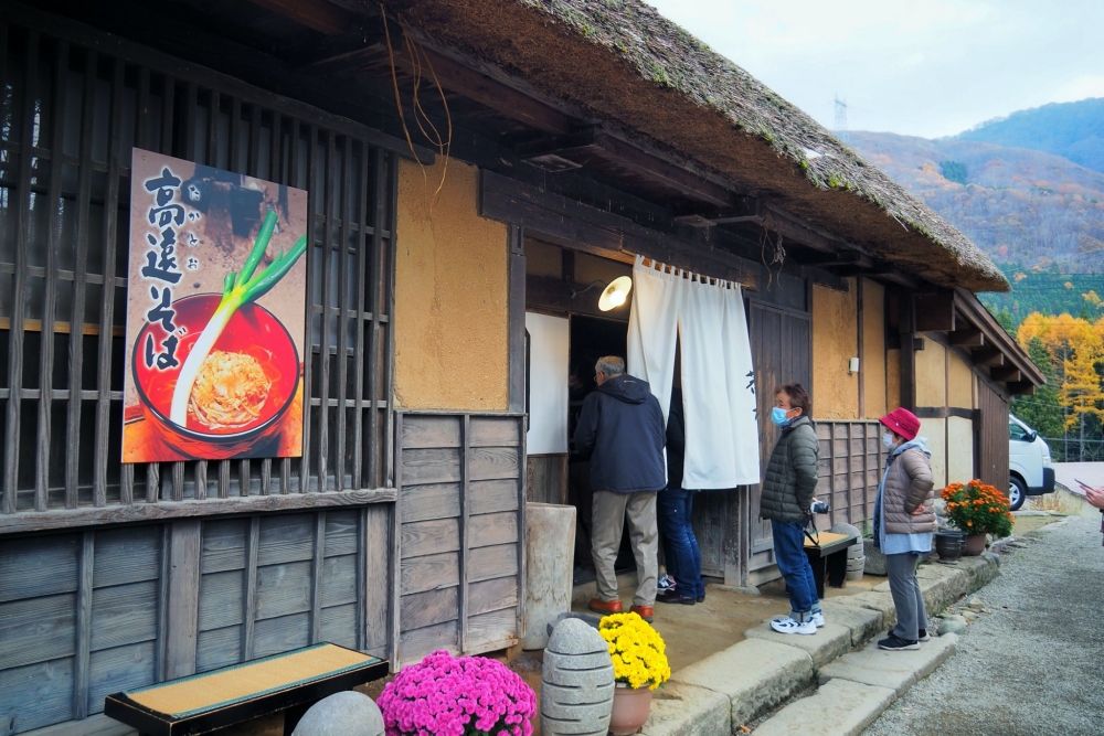 As for the must-try food of this village, I recommend Negi Soba (ネギそば). There are many diners that serve this particular soba, Misawaya (三澤屋) is one of them. Misawaya is a famous diner, as seen by the long line of customers waiting outside. The diner is decorated in a traditional Japanese style. With kotatsu, a table with a heater, to warm you up during winter.