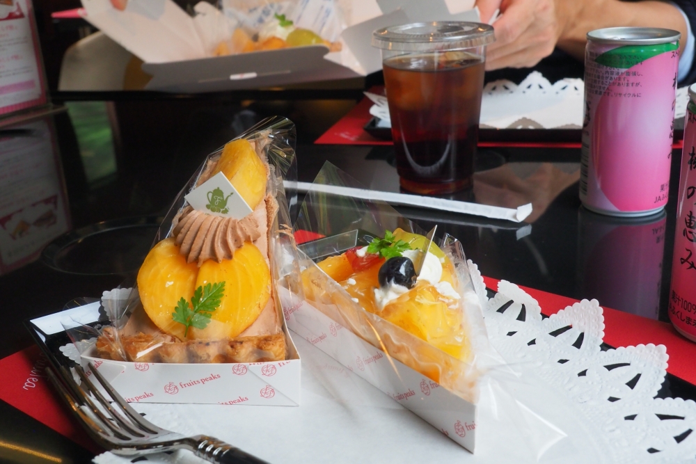 The desserts that we get to try on this trip are desserts made of persimmons, given that we were travelling in November which is the season of persimmon. Fukushima’s persimmons are famous to the extent that they are sent to the imperial court for the imperial family. Each set contained two desserts—custard cream tart and chocolate mousse tart. Both have persimmons as the main topping, sprinkled with a few other fruits like strawberries, blueberries, and grapes.