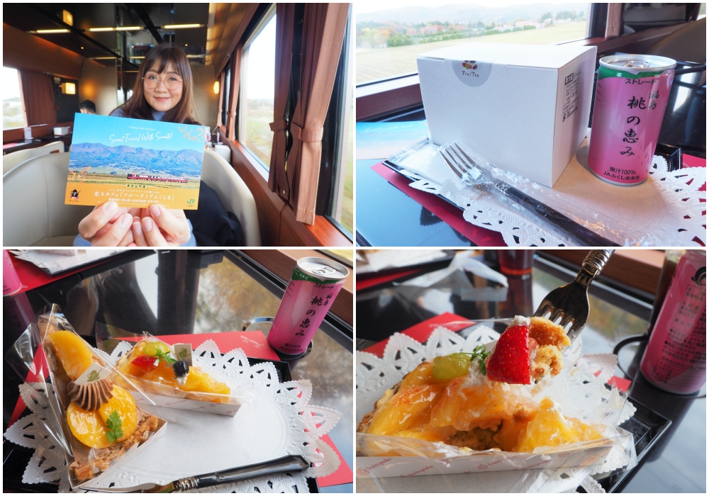 The interesting thing about FruiTea Fukushima is that all desserts that are served aboard the train are all made from seasonal fruits of Fukushima Prefecture. Be it strawberries, Japanese cherries, peaches, pears, grapes, persimmons, or others, prepare to treat yourself to Fukushima’s famous and delicious fruits.
