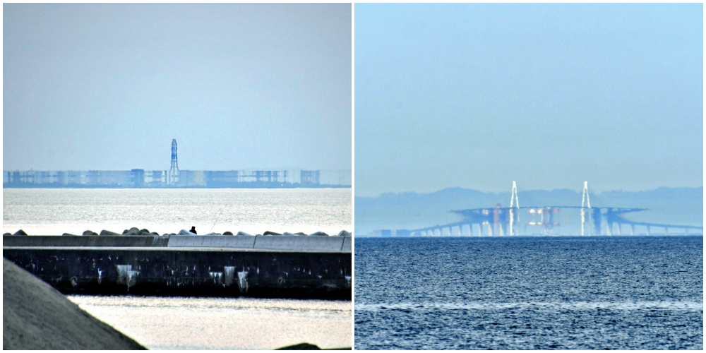 Other than fish, another special thing you can observe at Toyama Bay, particularly around the eastern city of Uozu (魚津), is a mysterious phenomenon known as mirages (蜃気楼 shinkirо̄). A mirage is an optical phenomenon that occurs when layers of air have different densities, refracting light in the atmosphere to create upside-down or elongated images of distant scenery.