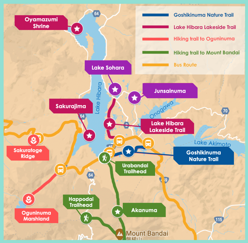 Map of Urabandai’s places mentioned in this article. (Image credit: Google Maps)