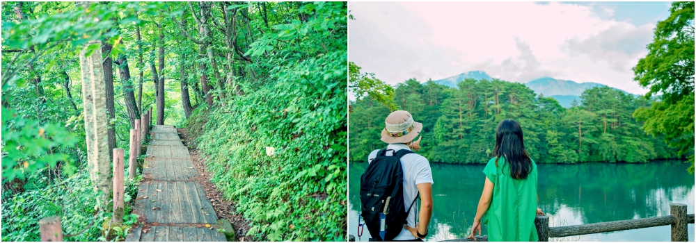 Other than the creation of the dramatic crater walls, Mount Bandai’s 1888 eruption led to rock avalanches that blocked off the river, which in turn created the abundance of stunning lakes and ponds we can enjoy at Urabandai today. Located in the middle of nature, Urabandai is isolated from the city, away from the crowds, and is a place where you can immerse in nature. There are various hiking trails to explore, which are well-maintained and easy to walk. Due to the area's higher altitude, the air is cool and breezy, especially in summer. It's such a wonderful feeling to walk through the well-maintained trails in the middle of the forest, breathing in the fresh and delicious air, with mesmerising views all around. Let’s check out some of Urabandai’s a-bandai-nt nature, shall we?