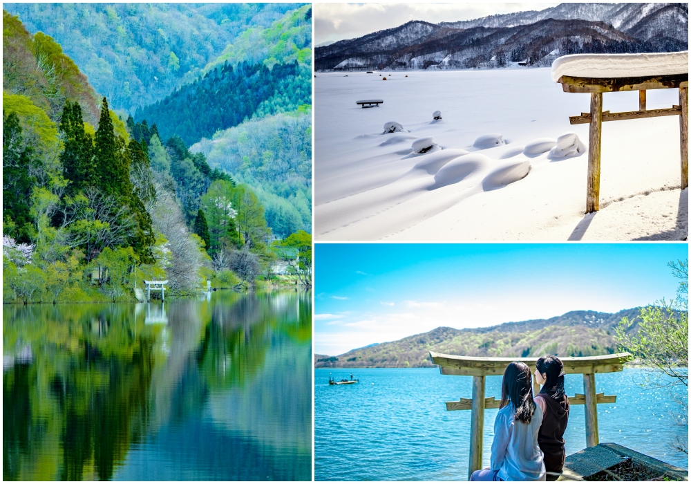 Oyamazumi Shrine in different times of the year. (Image credit: 裏磐梯観光協会)
