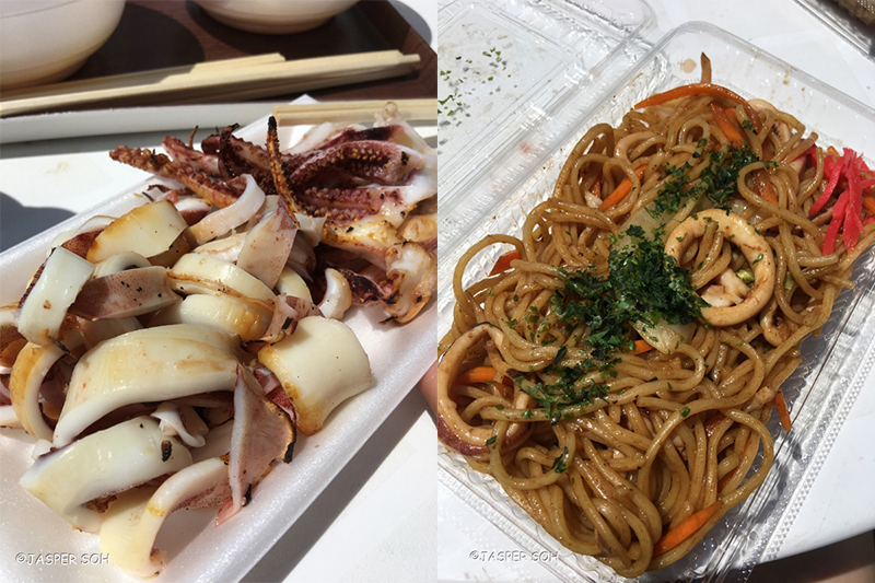 Mực nướng và mì yakisoba mực ngon lành. (Nguồn ảnh: Jasper Soh)