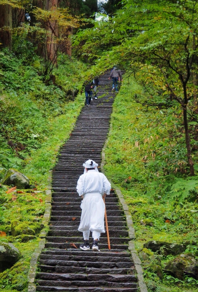 Khi đến thăm ngọn núi tượng trưng cho sự "sinh" này, lên đồ phù hợp với bầu không khí của ngọn núi là một cách tốt để tận hưởng chuyến đi. Trong chuyến đi này, chúng mình đã thuê một bộ shiroshо̄zoku (白装, - quần áo màu trắng mà các tu sĩ Yamabushi thường mặc khi đi lên núi). Sau khi mặc đồ vào mình cảm thấy như một tu sĩ đích thực vậy.