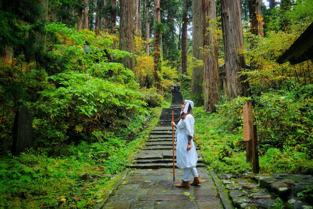 Thuê một bộ trang phục shiroshozoku để leo lên núi Haguro. (Nguồn ảnh: Krobkrueng Japan)