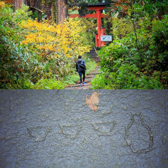 Để đến được đỉnh núi Haguro, bạn sẽ phải leo 1,7 km lên 2.446 bậc thang - mất khoảng 90 phút. Truyền thuyết kể rằng có 33 hình chạm khắc những cốc rượu, quả bầu và hoa sen rải rác dọc các bậc thang. Nếu bạn tìm được đủ cả 33 hình, thì điều ước của bạn sẽ thành thực hiện. Mặc dù mình đã thấy một vài hình chạm khắc, nhưng rất tiếc là không tìm được đủ cả 33 hình.