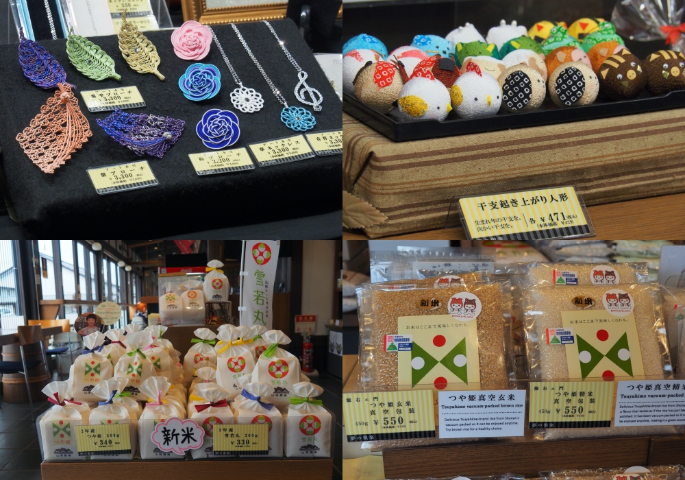 Mặt khác, Sakata Yume no Kura chủ yếu là nơi bán hàng lưu niệm, tại đây, bạn có thể tìm thấy nhiều loại quà để mua về cho gia đình và bạn bè; có thể là gạo địa phương, vải lụa hoặc các mặt hàng thủ công khác. Hai trong số ba cửa hàng đã được tu bổ nâng cấp, nên trông vô cùng hiện đại. Gạo của Shonai là mĩ vị thực thụ, và có bán những túi nhỏ nếu bạn muốn mua làm quà lưu niệm. Ngoài ra cũng có những túi gạo đóng gói hút chân không nữa đó.