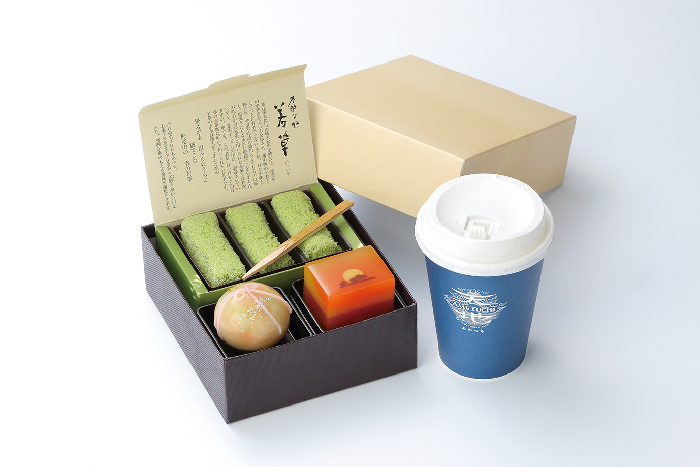 Make sure to check out their lineup of train bento boxes, which run the gamut from savoury lunches to light dessert courses. This particular box is available on the Izumoshi-Tottori route, and features handmade wagashi (和菓子, traditional Japanese sweets) inspired by the Japanese creation myth of Izanagi (イザナギ) and Izanami (イザナミ). (Image credit: West Japan Railway Company)