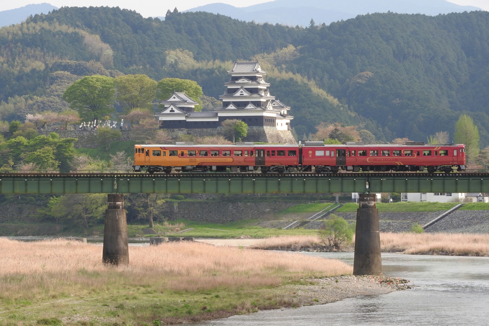 The Iyonada Monogatari (伊予灘ものがたり) is a two-car sightseeing train that runs along the Iyonada Sea (伊予灘) while also giving its passengers an indulgent view along the Hijikawa River (肱川). Designed with a nostalgic, retro-modern aesthetic, this train promises both a feast for your eyes and belly alike! Its cars are painted a warm red and gold, meant to evoke images of the rich sunsets visible from Iyonada, as well as juicy citrus fruits—one of the many types of produce that Ehime is known for growing. Passengers can round out their Ehime experience by savouring their train meal sets, which are made lovingly with local produce. As you may have noticed, this train seems to be designed around a slow, romantic sort of atmosphere; it is no wonder then that it runs on the “Iyonada Line of Love” (愛ある伊予灘線 Ai aru iyonada sen)!