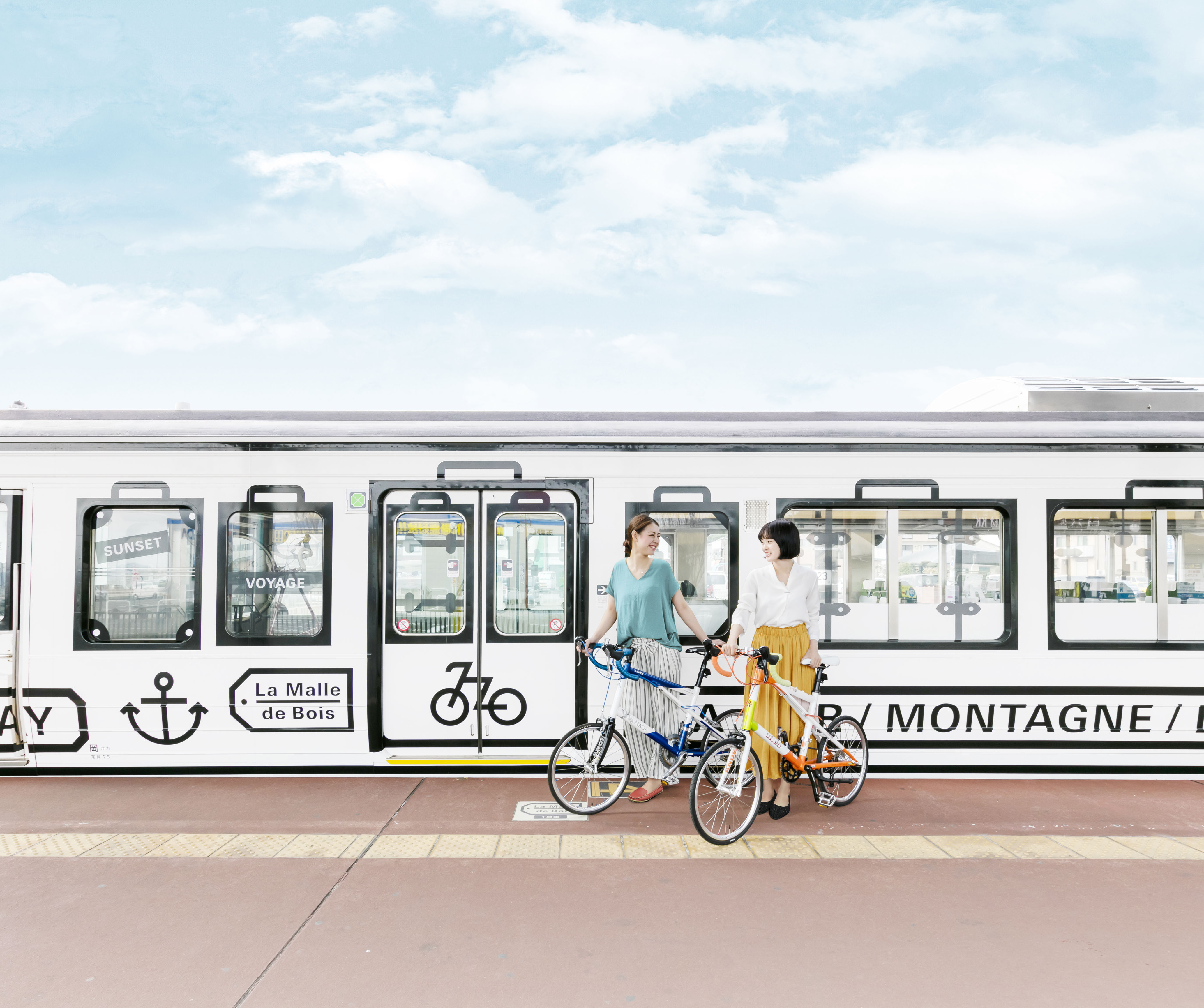 The La Malle de Bois (ラ・マル・ド・ボア Ra Maru do Boa), French for “wooden suitcase”, is the perfect train for the art-lovers amongst us! This train, which was designed around the concept of merging bicycle tourism with rail travel, is finished with a stylish white-and-black design on its exterior. It also comes with storage space for up to 8 regular bicycles per carriage, making it the perfect train for travellers who are looking to explore the art islands in the Setouchi area. These islands—Naoshima (直島), Teshima (豊島), and the like—which are perhaps most famously known for being home to installations like artist Kusama Yayoi’s (草間彌生) giant polka-dotted pumpkin, are renowned cycling destinations as well.