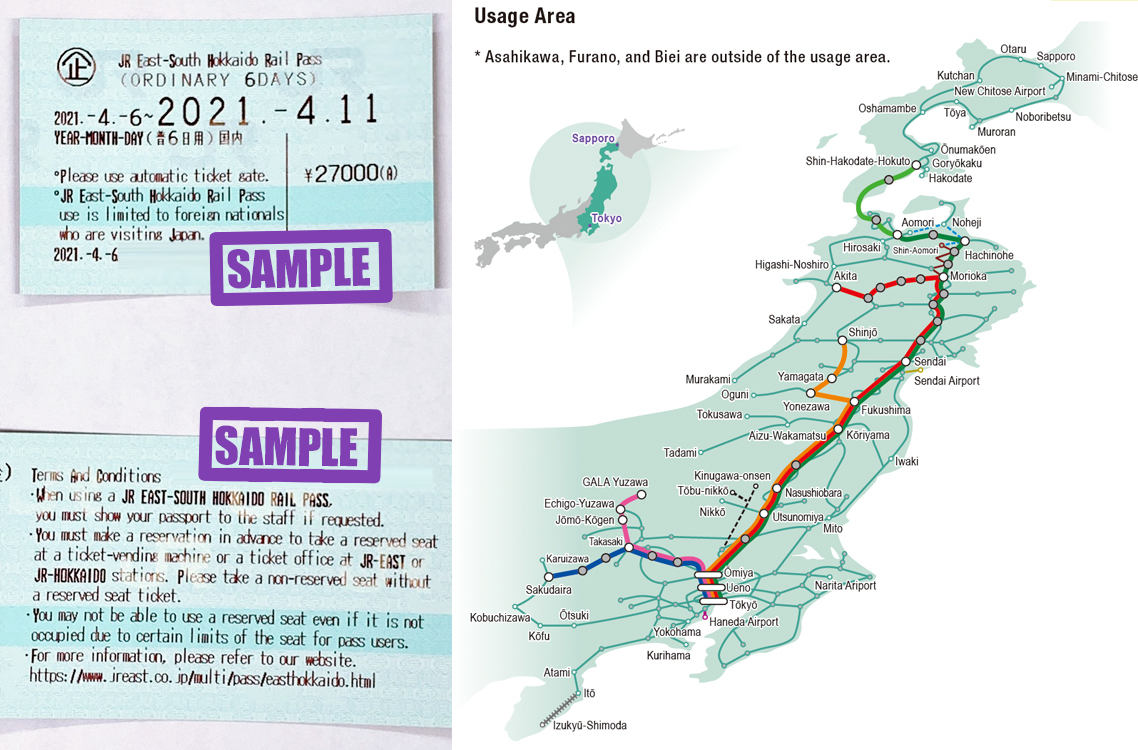 If you are visiting the Aomori and Hokkaido regions, check out JR East-South Hokkaido Rail Pass, an affordable pass offering unlimited rail travel on JR East and JR Hokkaido lines (including bullet trains) in the valid area for 6 consecutive days. You can use it from Tokyo all the way until Sapporo. At only ¥27,000, it costs less than a round-trip between Tokyo and Aomori (~¥35,000), Tokyo and Hakodate (~¥47,500), or Tokyo and Sapporo (¥55,500).