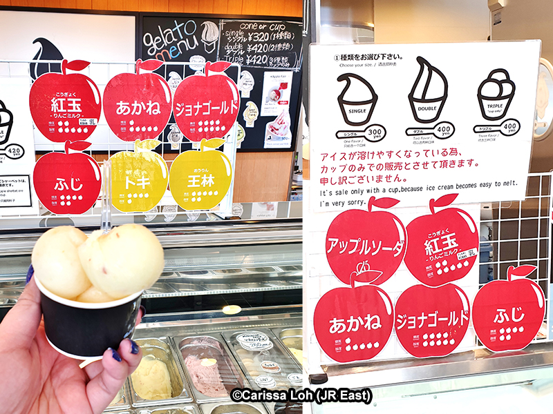 Apple gelato in a variety of apple flavours. (Image credit: JR East / Carissa Loh)