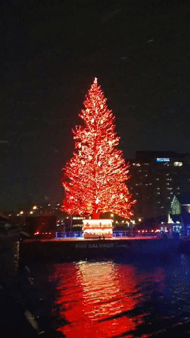 Every evening from 01–25 December, a large fir Christmas tree covered with 50,000 lights is set up on a floating platform and dazzles the Hakodate Bay Area. This is the Hakodate Christmas Fantasy (函館クリスマスファンタジー Hakodate kurisimasu fantajī). Every 15 minutes or so, the illumination colours change, providing a different atmosphere. On some days fireworks are set off, and with stage performances to liven up the atmosphere. I visited on Christmas Day, and as luck would have it, it was snowing.