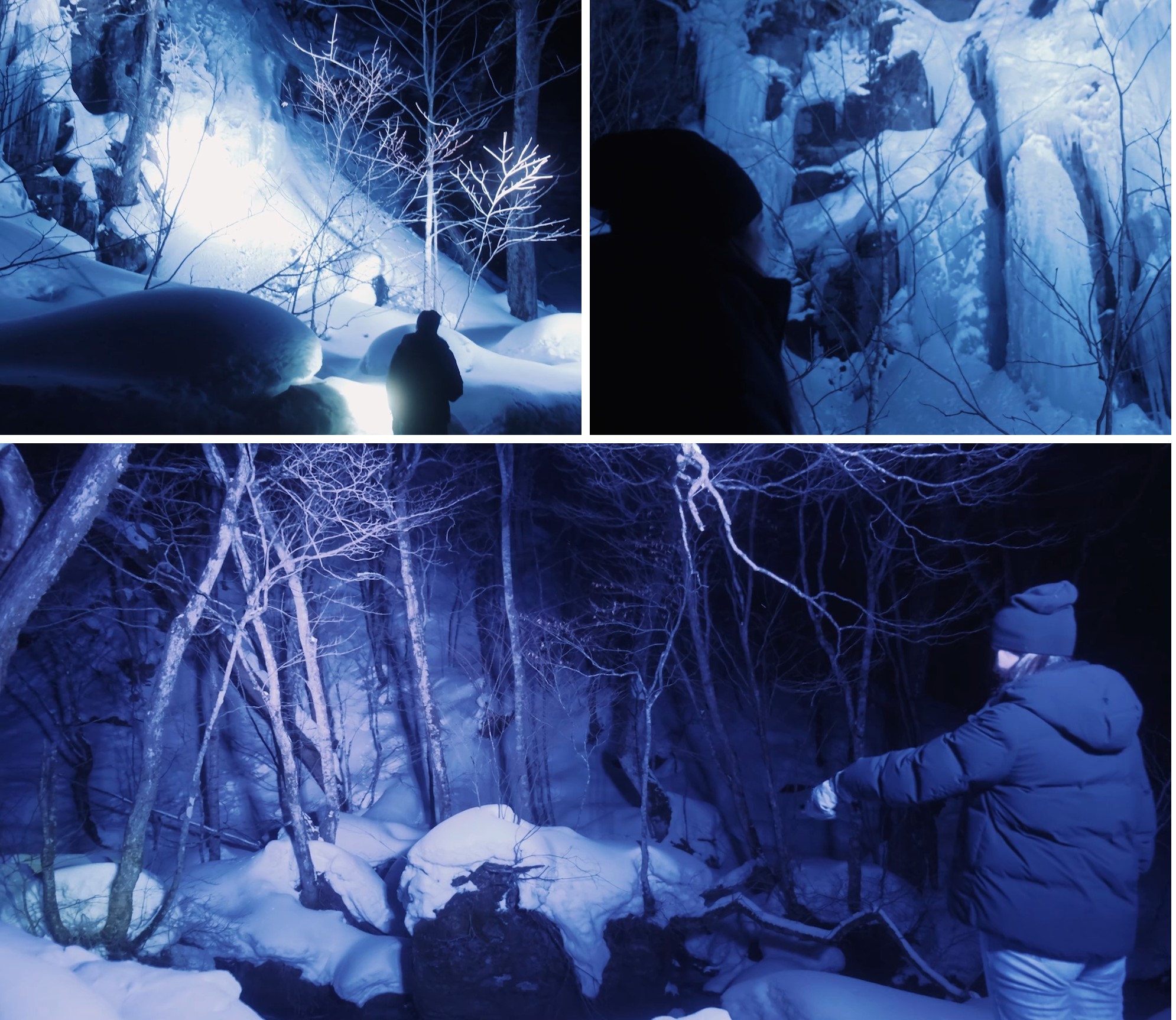 Another thing that Anna was really looking forward to was the Oirase Winter Tour at night, where she would get to visit the stream near the hotel. The theme of the tour was “Ice Blue”, and Anna got to witness the stream as well as the frozen waterfalls and ice falls lit up in shades of blue and purple, reflecting the colours of winter. (Note: The Oirase Winter Tour is only for guests staying at the Oirase Keiryu Hotel.)