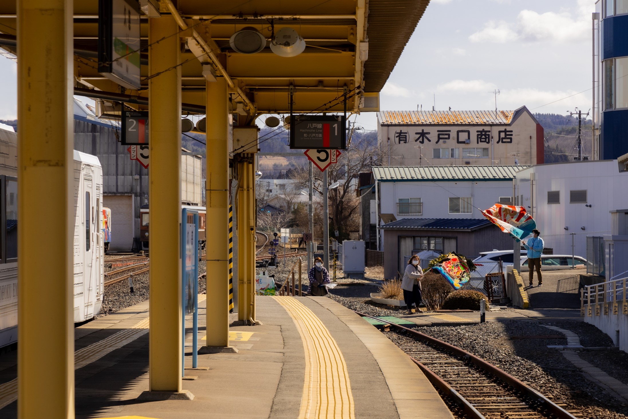 When Anna finally reached JR Kuji Station, she spent some time exploring around the station before her next train ride back to Hachinohe. She was surprised again to see the locals greeting her and showing their hospitality by waving flags with enthusiasm.