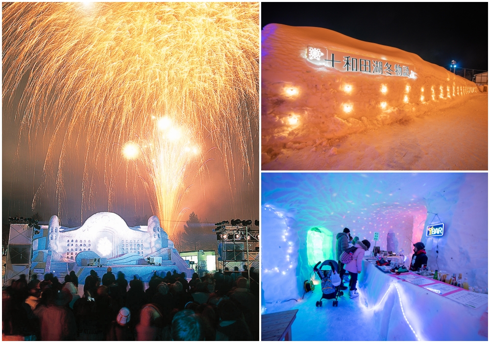 Along the shores of Lake Towada around the Yasumiya area, a special site is built to host this event, which lasts from early December to late February. Visitors can expect large snow sculptures, an igloo bar, banana boat rides, and even horse trekking. On the evenings of Saturdays, Sundays, and Public Holidays, enjoy a Tsugaru shamisen (三味線 traditional Japanese string instrument) performance, as well as a colourful fireworks display.
