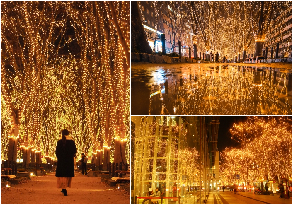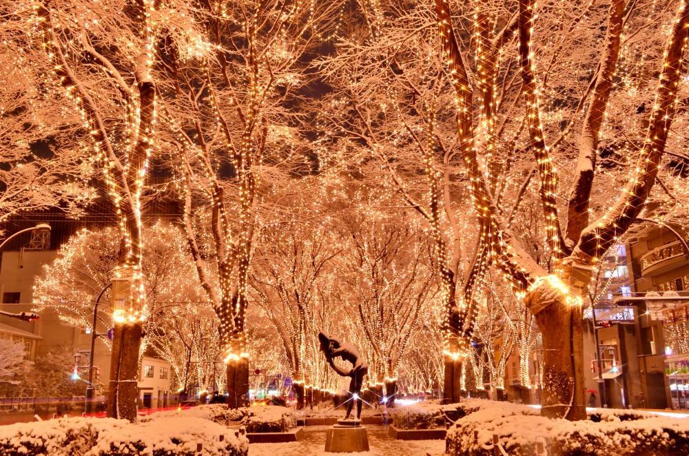 Every December for around two weeks, the zelkova trees (欅 keyaki) along Jozenji-dori (定禅寺通り Jо̄zenji-dо̄ri) are covered with around 600,000 LED lights that illuminate the entire area. It’s a magical experience walking through the avenue under the lights, which create a romantic atmosphere.