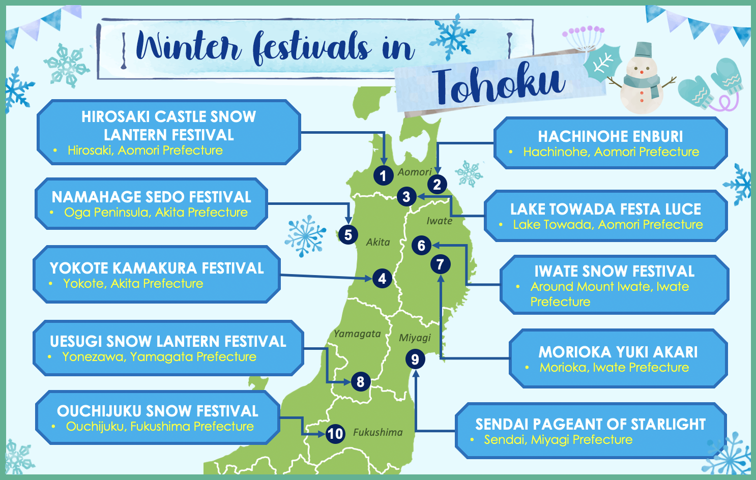 Map of festivals mentioned in this article. (Image credit: JR East / Carissa Loh)