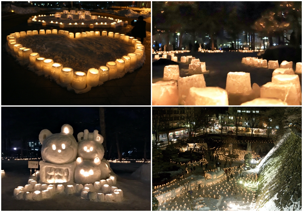 Although you can see the candles at various locations around the city, the festival is mainly centred around the Morioka Castle Site Park (盛岡城跡公園 Morioka-jōseki Kōen), where there are also various snow sculptures crafted in cute shapes on display.