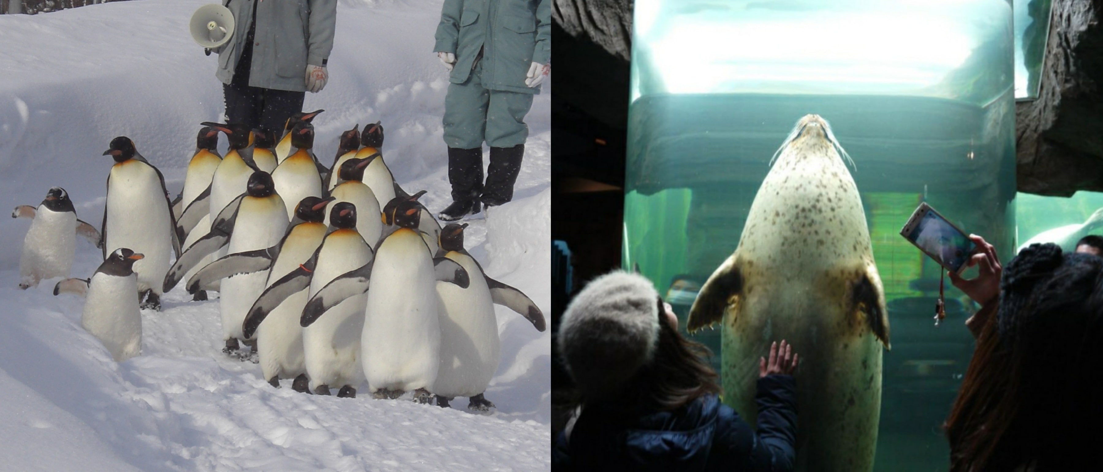 Marching penguins (left) and seals (right) at Asahiyama Zoo in Asahikawa. (Image credit: Hokkaido Railway Company)