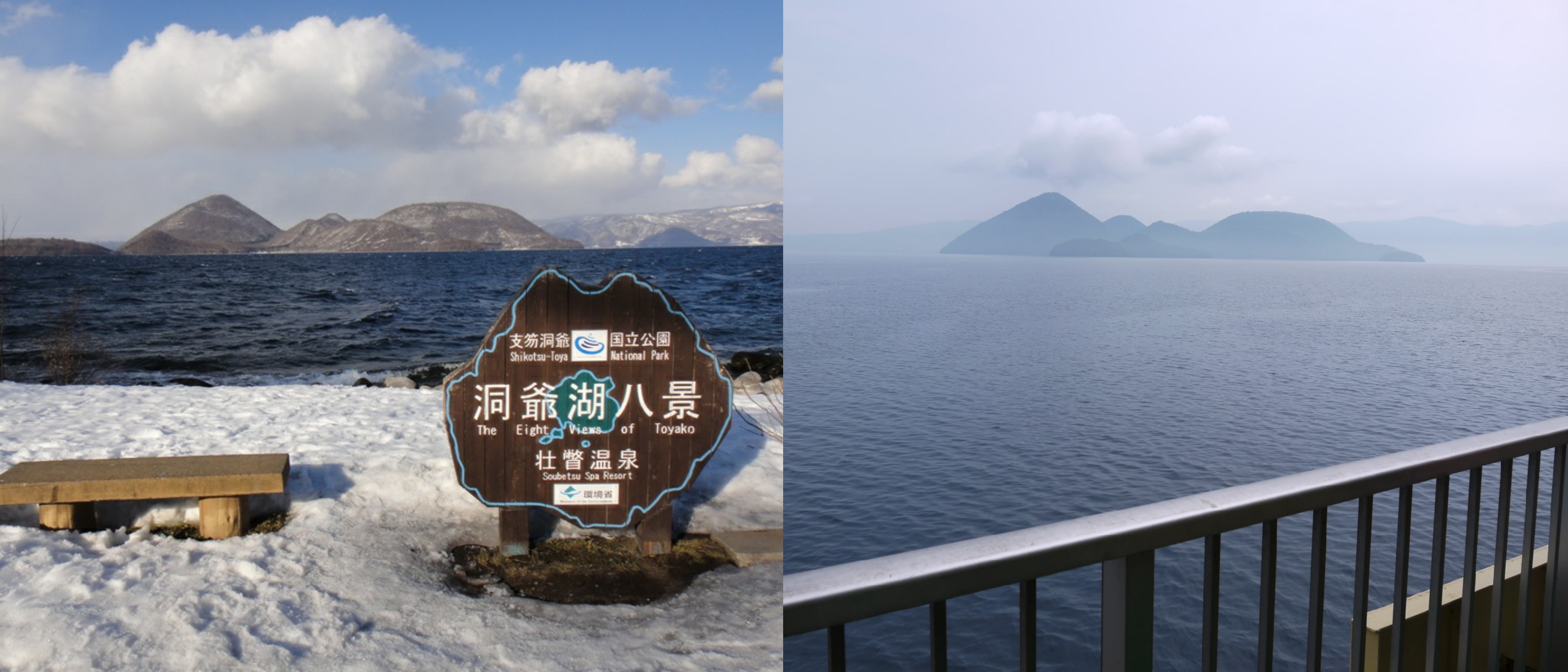 Next, we make our way back northward to Lake Toya (洞爺湖). From Hakodate, take the train bound for Sapporo and get off at JR Toya Station (JR洞爺駅 Tōya-eki), and transfer to a local bus bound for Toyako (Lake Toya). The bus ride takes about 20 minutes. Lake Toya is part of the Shikotsu-Toya National Park, and is the third largest volcanic caldera lake in Japan, followed by Lake Kussharo (屈斜路湖 Kussharo-ko) and Lake Shikotsu (支笏湖 Shikotsu-ko), both of which are also in Hokkaido. It’s the northernmost unfrozen lake in Japan created from a huge eruption about 110,000 years ago. However, part of the lake freezes over sometimes these days because it is getting colder in recent years. You can take a cruise around Lake Toya even in winter, so enjoy the scenery which is unlike that during other seasons.