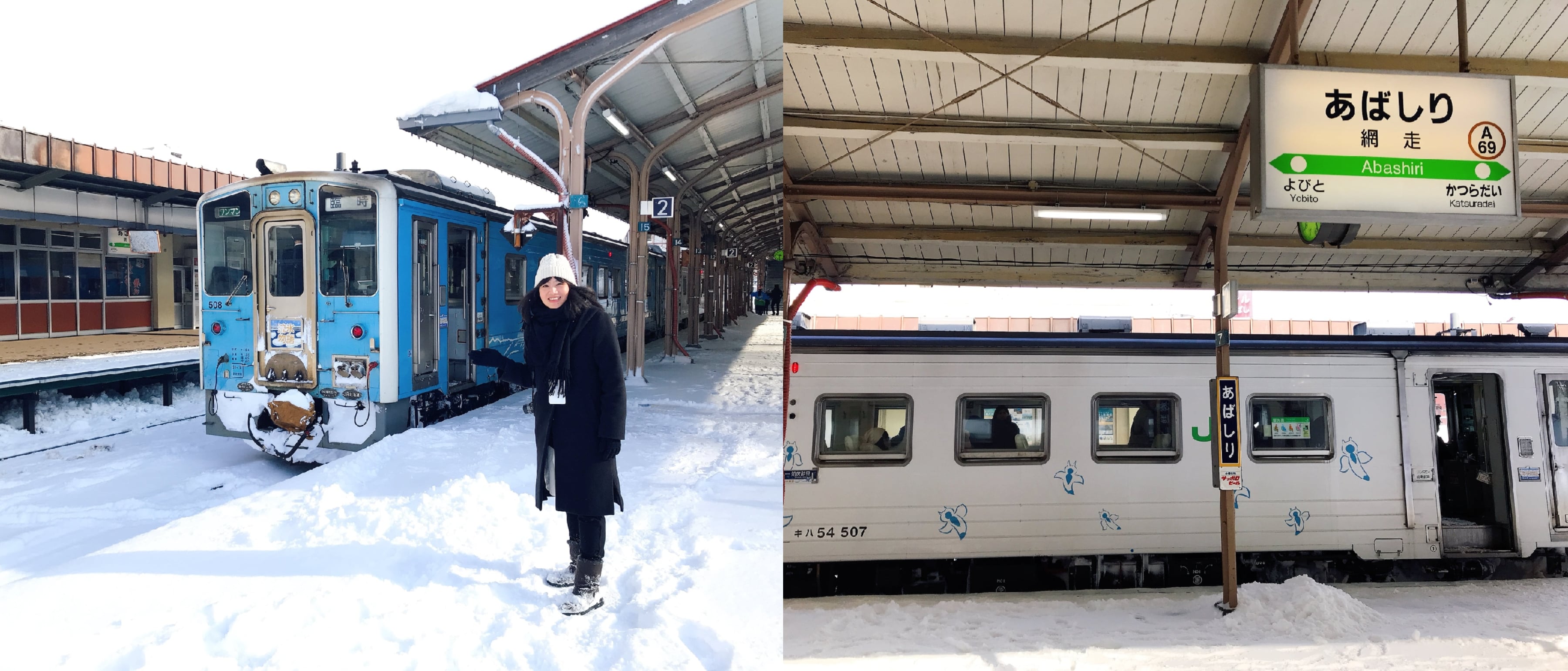 The Ryuhyo Monogatari Train (left) runs from JR Abashiri Station (right) to JR Shiretoko-Shari Station. (Image credit: Hokkaido Railway Company)