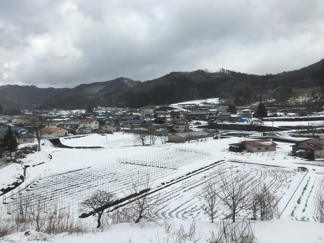 Because the area surrounding the Yonesaka Line is mountainous, the municipalities which the line traverses experience heavy snowfall in winter. This is exceptionally so in Oguni, where the snow cover frequently exceeds 2 metres. I remember looking out of the window for a while after the train left Oguni Station and being fascinated by just how much snow had piled it—so much so that everything around me was white, and almost nothing could be made out. In addition, as the Yonezawa area is a basin surrounded by many mountains, the region also experiences much snow, thereby allowing riders the chance to see many snowy landscapes when travelling on the line during winter.
