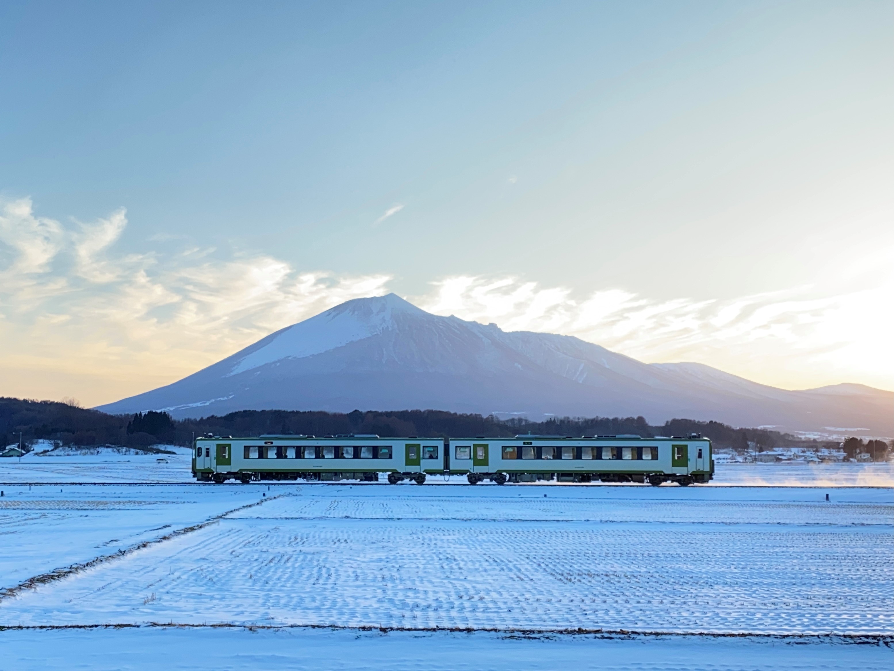 Alternatively, shutterbugs can aim for pictures of the Hanawa Line with Mount Iwate in the background from various locations in Hachimantai City along the line—these spots also have rice fields and other fields nearby, making it possible to capture, say, a picture of the trains cutting across snow-covered rice fields against a backdrop of Mount Iwate!