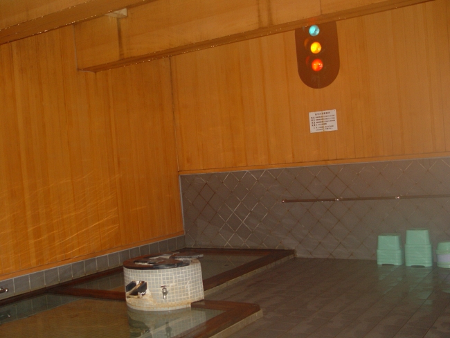 I did not know about this feature before taking the Kitakami Line, so imagine my surprise when I stepped into the bathing area only to see traffic lights mounted on the wall! It is definitely a unique way of telling how much time one has left before the next train, and much easier to make out in the mist of the indoor baths than a numerical clock.