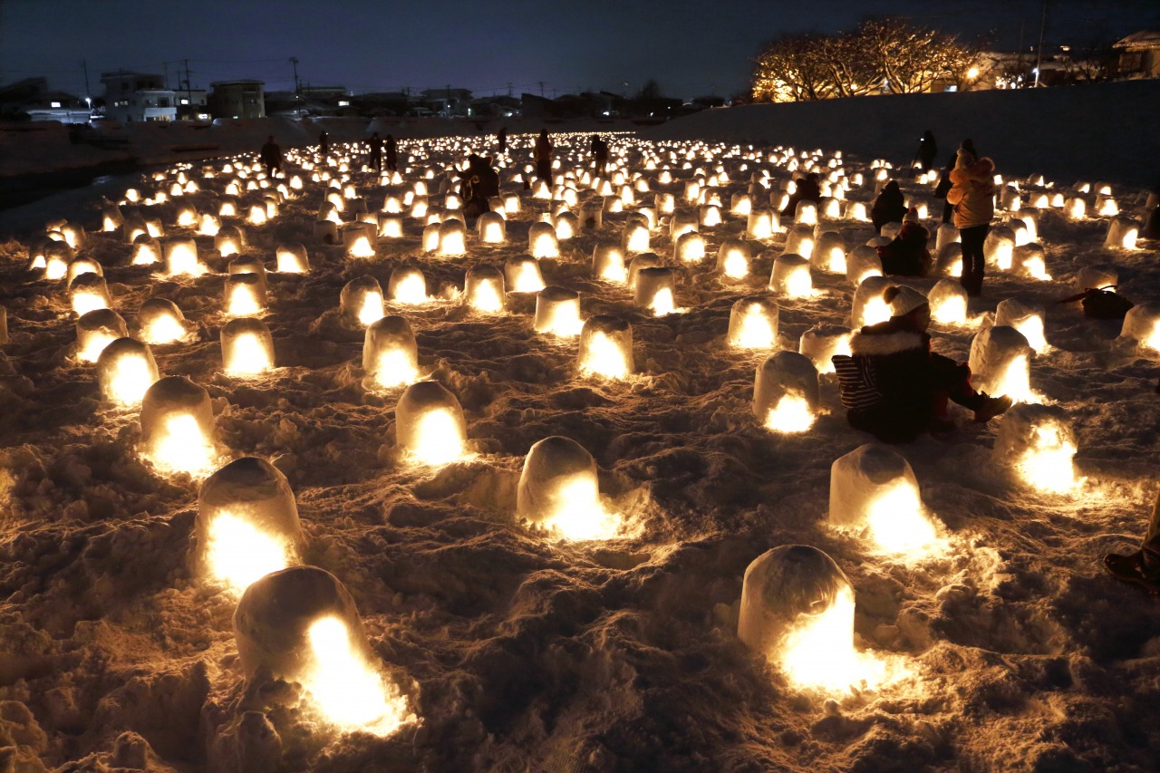 During the Yokote Kamakura Festival (横手の雪まつり Yokote no yuki-matsuri), held on the 15th and 16th February every year, around 100 kamakura made by craftsmen are on display in Yokote City, and there are many events to be enjoyed over the weekend the festival takes place. For those of you who are planning to visit Yokote at another time, though, do not fret, because you can still get to have a look at a kamakura, as well as experience what being inside one feels like!