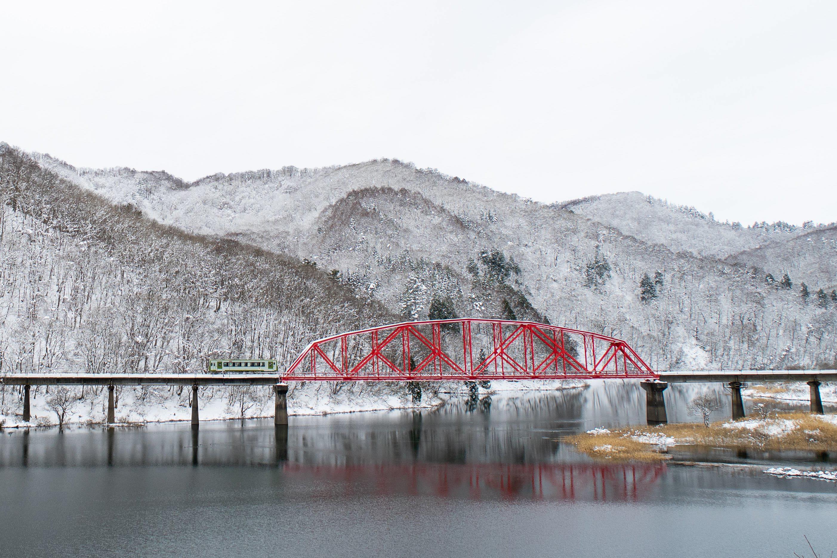 The first time I took the line, I was awestruck by the beauty of the scenery—the red of the railway bridge across the Waga River further stood out amidst the snow capping the mountains and blanketing the frozen surface of Kinshūko, not unlike a black-and-white ink painting where one’s eyes are drawn towards a sudden splash of red on the canvas.