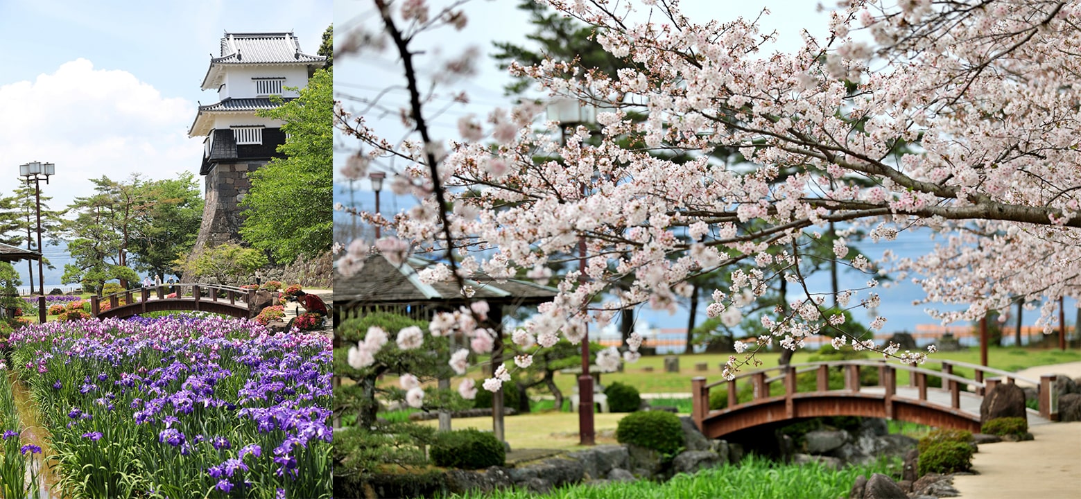 Located within the city of the same name, Omura Park (大村公園) is situated just beyond the outer walls of Kushima Castle (玖島城 Kushima-jō), and has over 2,000 sakura trees—including over 300 rare Omurazakura trees, which have two-layered flowers that can hold up to 200 petals! In addition, the park is filled with thousands of azaleas and irises, which add shades of blue and purple to the park’s landscape.
