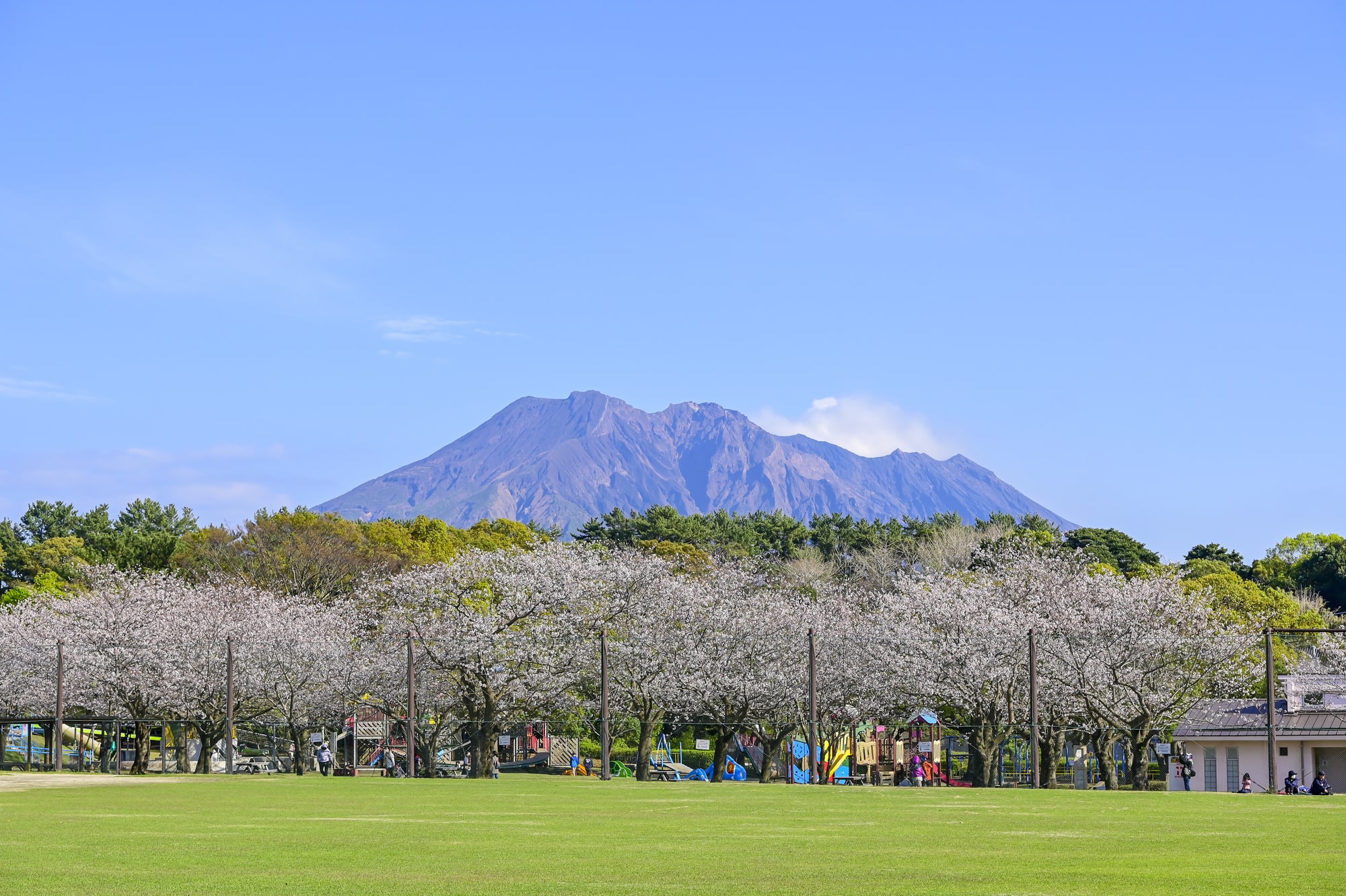 The volcano Sakurajima looms over the horizon of this park. (Image credit: Kagoshima City)