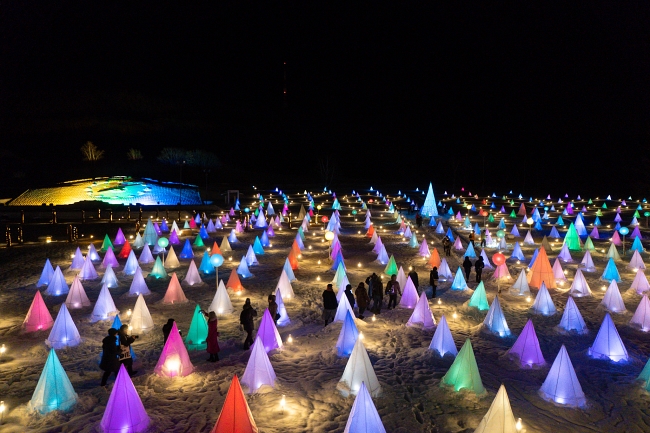 Colourfully illuminated tetrahedrons at the Otofuke Tokachigawa Swan Festival Sairinka. (Image credit: Low Ka Wei)