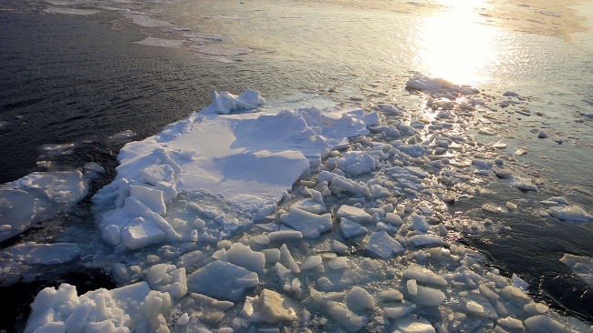 Drift ice in the glow of the setting sun. (Image credit: Kevin Koh)